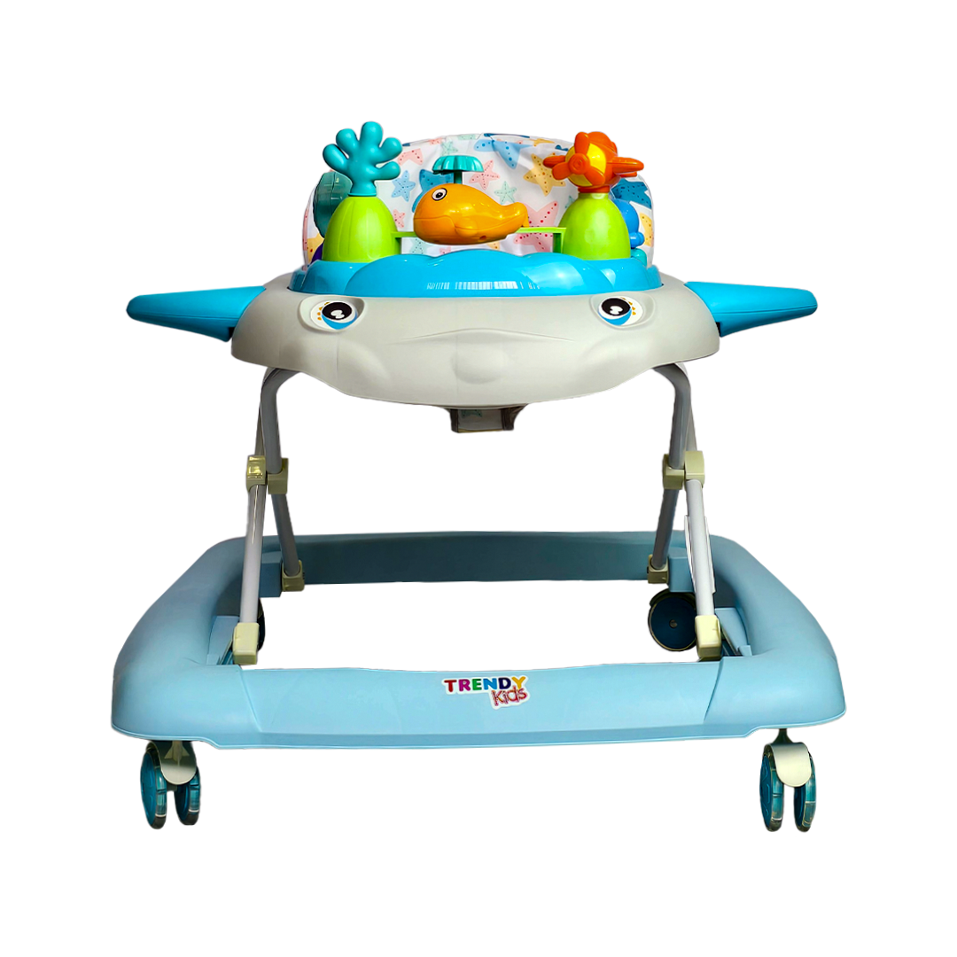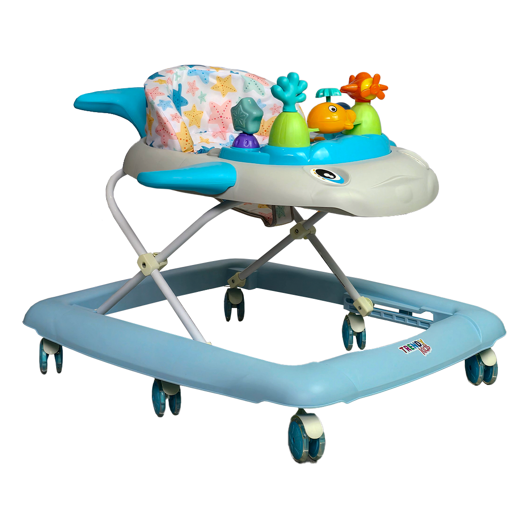 Gracias a sus 6 llantas dobles de gel, tu bebé disfrutará de un desplazamiento más suave, silencioso y estable, perfecto para moverse con confianza. Y como toque especial, las luces en las aletas y la cola crean un efecto visual encantador que capta su atención al instante. 🌈🐳