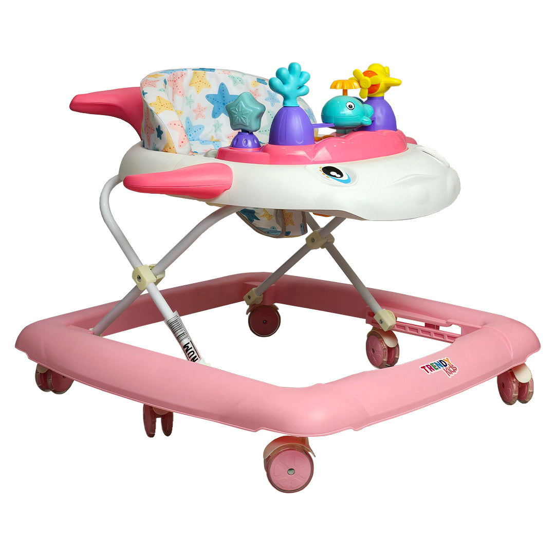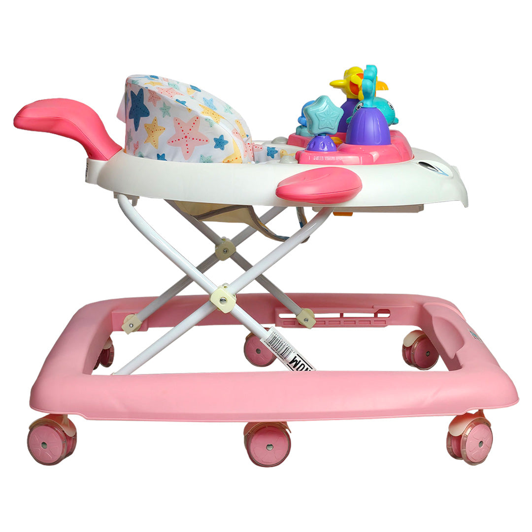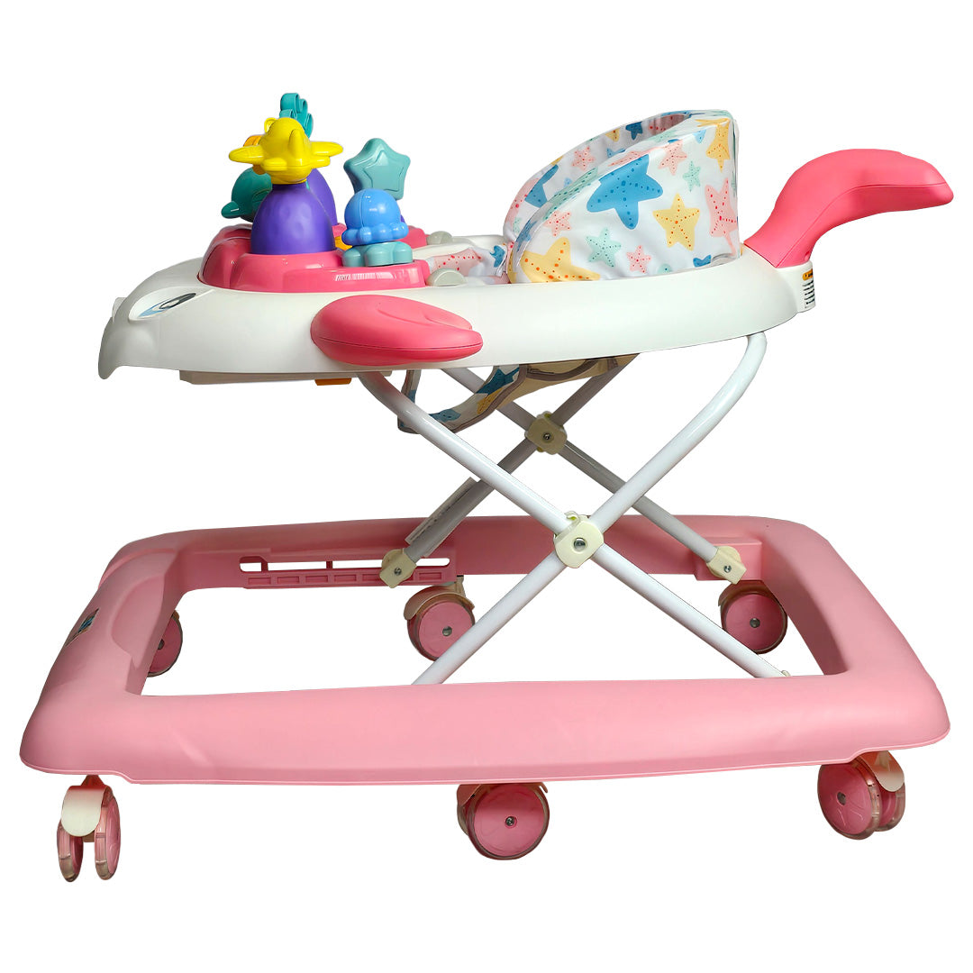 Gracias a sus 6 llantas dobles de gel, tu bebé disfrutará de un desplazamiento más suave, silencioso y estable, perfecto para moverse con confianza. Y como toque especial, las luces en las aletas y la cola crean un efecto visual encantador que capta su atención al instante. 🌈🐳
