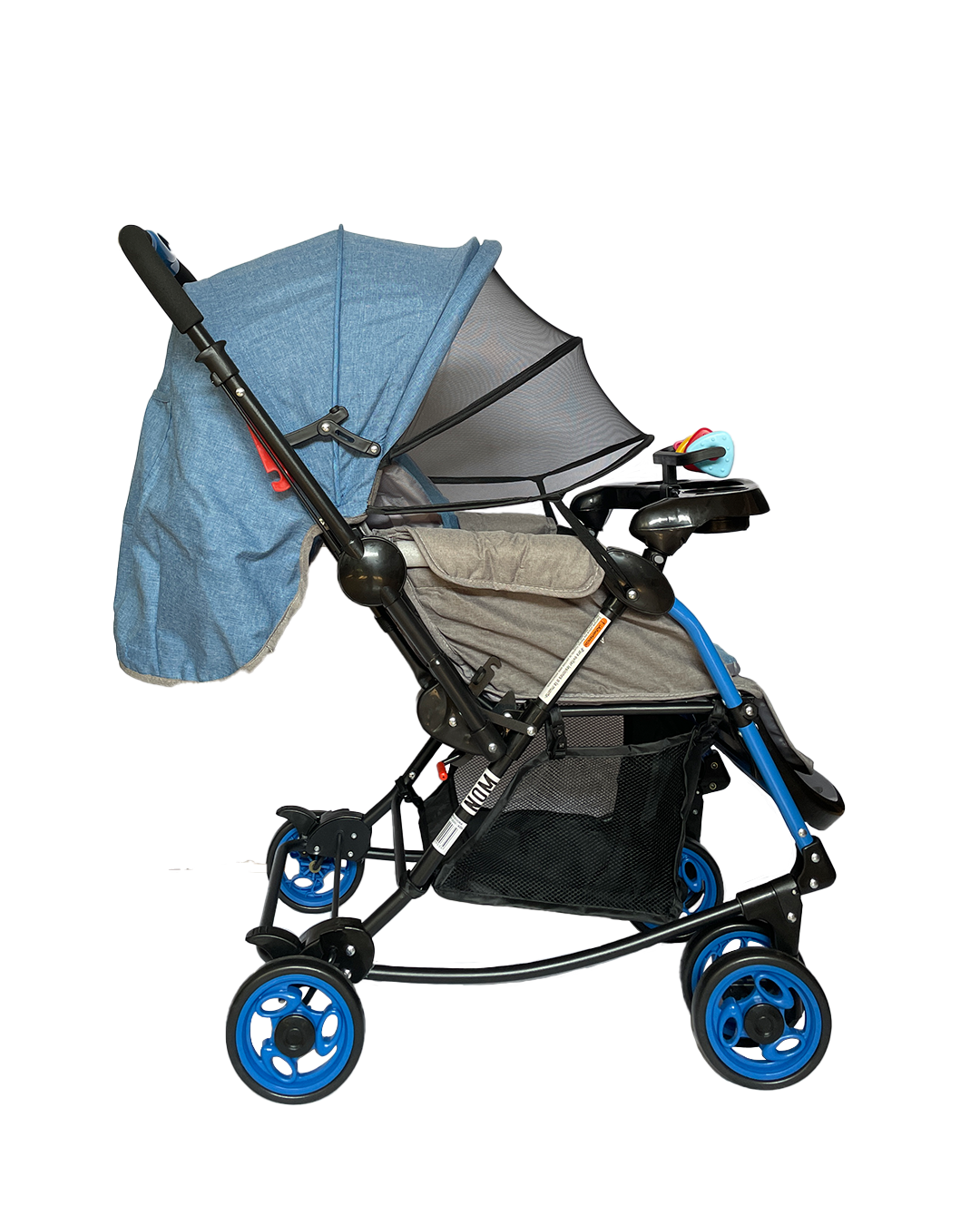 Con un respaldo de reclinación múltiple, se ajusta a las necesidades de tu bebé en todo momento, brindándole el máximo confort. Su arnés de 5 puntos de sujeción garantiza una sujeción segura, mientras que el toldo retráctil lo protege del sol y otros elementos. La amplia charola con portavasos, y canastilla añade un toque de funcionalidad, permitiendo que lleves todo lo necesario para ti y tu bebé.