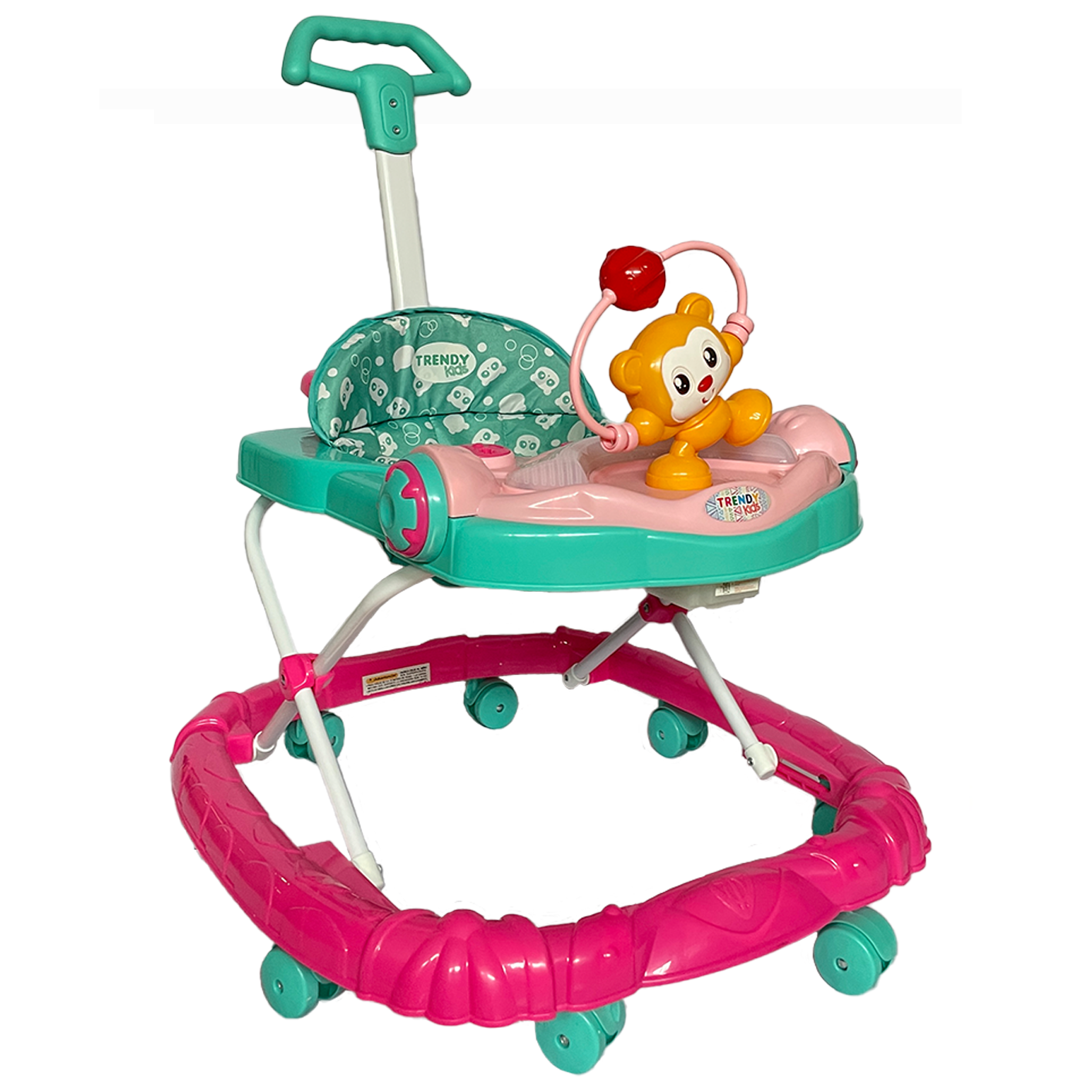 Las 8 llantas dobles de gel y la barra de empuje garantizan una maniobrabilidad suave y segura, permitiendo que tu bebé se desplace con facilidad y sin esfuerzos. ¡La Andadera MONKY es la mezcla perfecta de seguridad, comodidad y entretenimiento para que tu bebé se mueva con confianza y alegría!