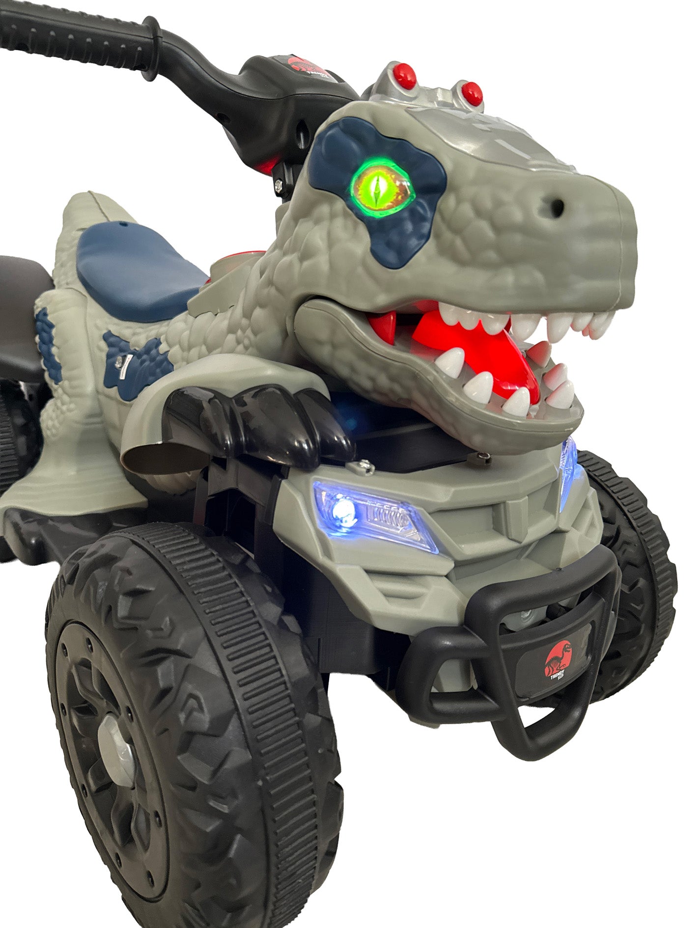 La cuatrimoto eléctrica Dino Racer es perfecta para que los peques vivan emocionantes paseos llenos de diversión y estilo. Su increíble diseño de dinosaurio, colores vibrantes y acabados llamativos la convierten en la favorita desde el primer arranque.
