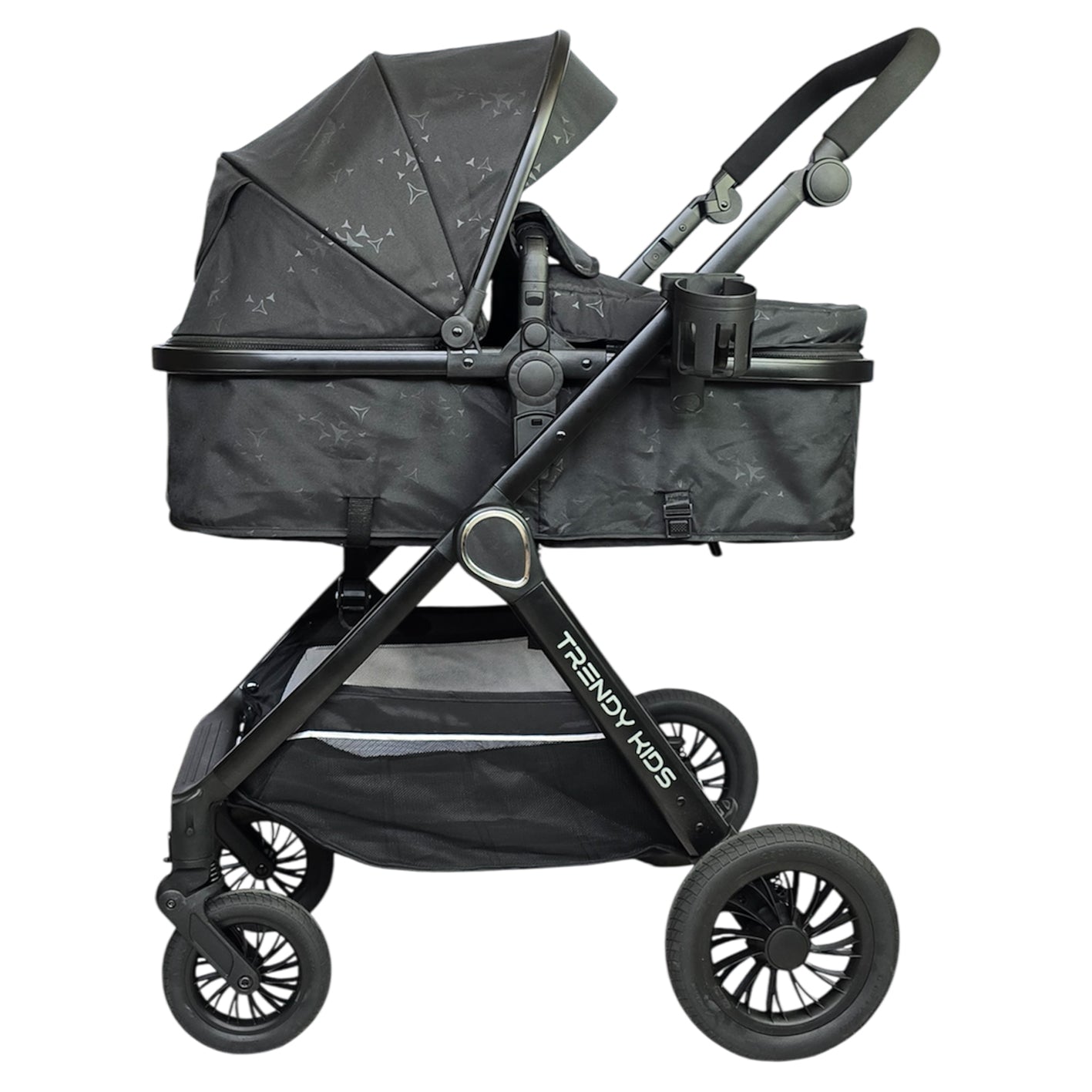 La nueva Carriola QUEEN 4 en 1 está diseñada para acompañar a tu peque desde sus primeros días hasta sus primeras aventuras. 💕 Su estructura de acero garantiza resistencia y estabilidad, mientras que su tela texturizada con estrellas le da ese toque adorable y moderno que tanto nos encanta. 🌙
